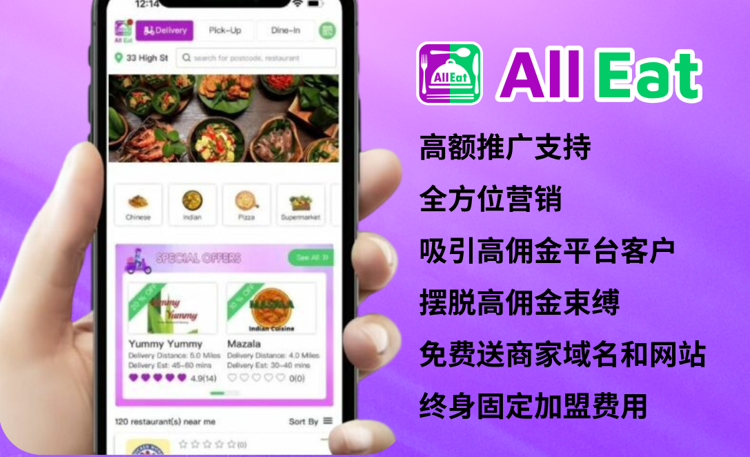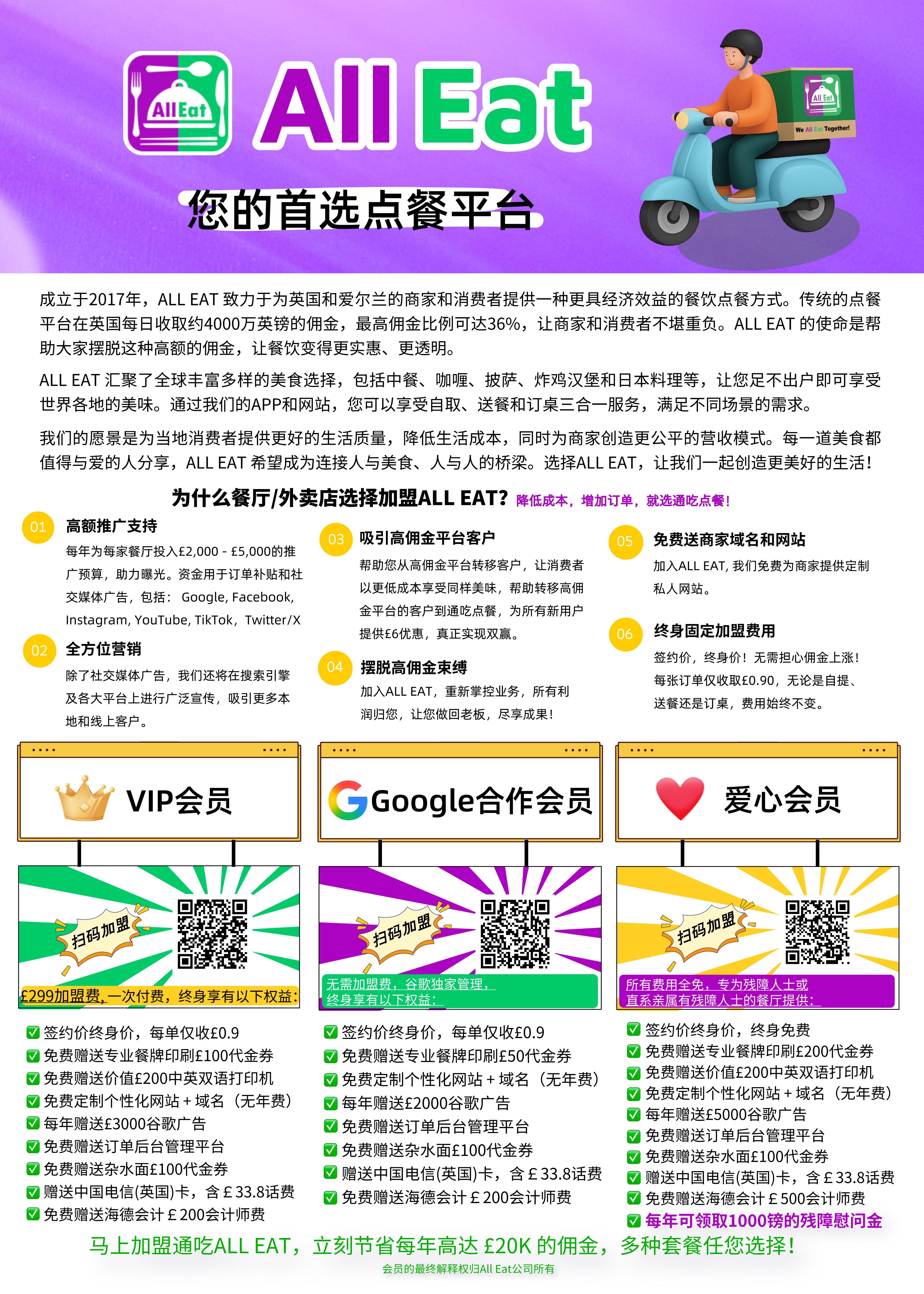 马上加盟通吃ALL EAT,立刻节省每年高达 £20K 的佣金,多种套餐任您选择!